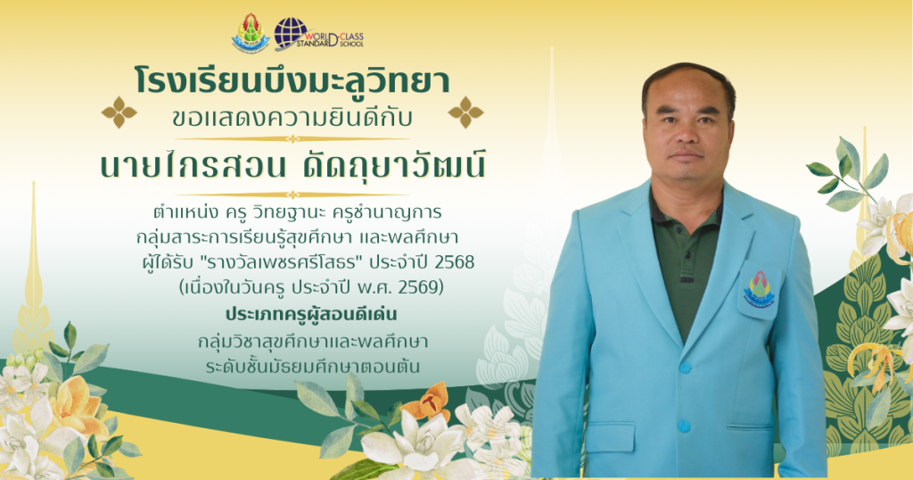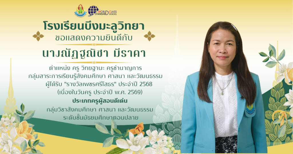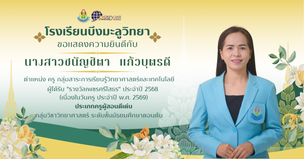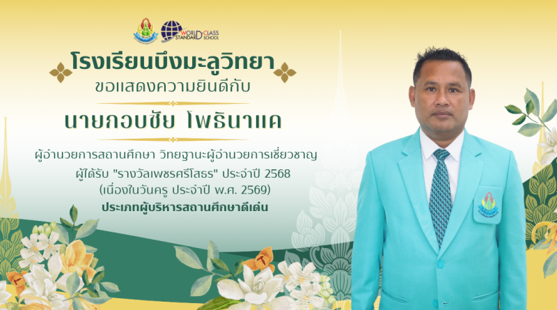ขอแสดงความยินดีกับผู้บริหารและคณะครูบุคลากรโรงเรียนบึงมะลูวิทยา ที่ได้รับรางวัล “เพชรศรีโสธร” ประจำปี 2568 เนื่องในวันครู ประจำปี พ.ศ. 2569